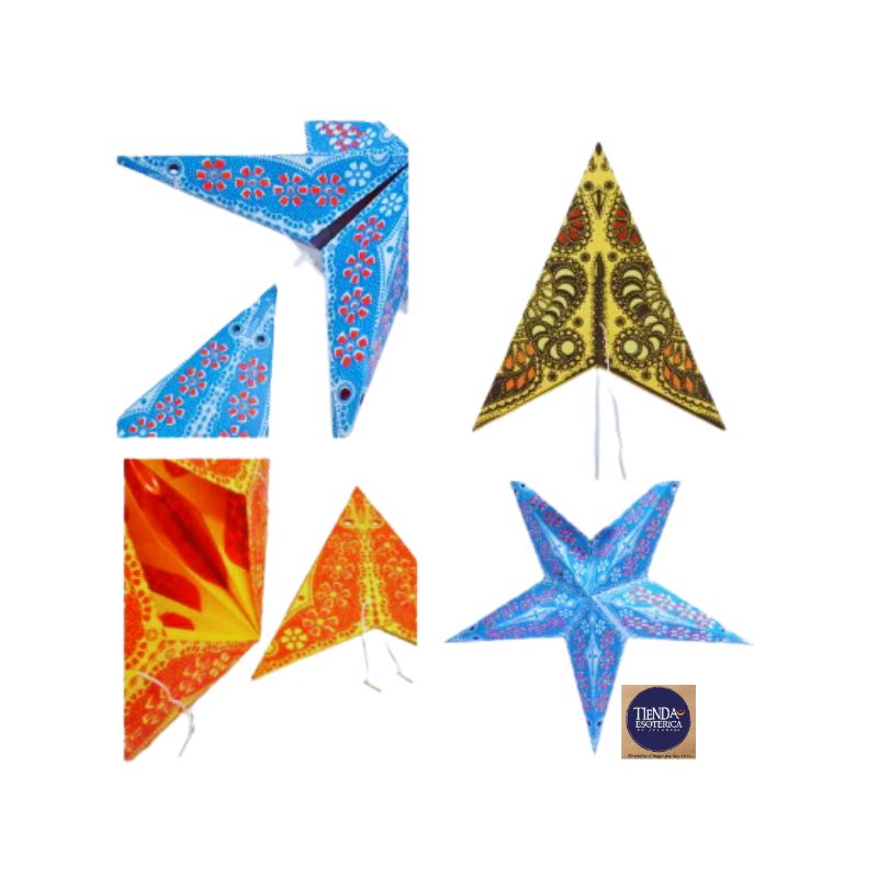 Las lámparas de papel con forma de estrella, conocidas como kandil o akash kandil en algunas partes del país, son un elemento tradicional de decoración en la India. Son artesanales, coloridas y se usan principalmente en festivales, especialmente durante el Diwali, el Festival de las Luces.